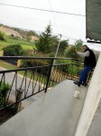 Hier stand es dann richtig. Anschließend haben die beiden angefangen, das Geländer im Boden des Balkons und an der Hauswand zu befestigen, haben aber nach einer Weile aufgehört, da es ziemlich heftig geregnet hat.