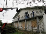 Ich war während der Aktion ein wenig besorgt, dass die Gabel das Dach oder die Hauswand durchbohrt. Aber wahrscheinlich haben diese Leute so etwas nicht zum ersten Mal gemacht, es ist jedenfalls nichts passiert.
