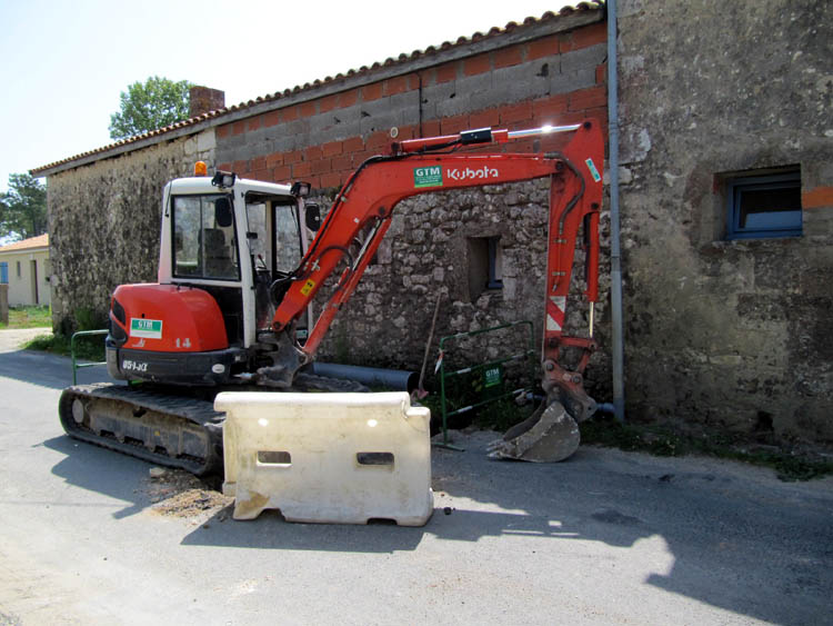 Die Arbeiten für die Abwasserkanalisation sind seit letzter Woche vor unserem Haus in vollem Gange. Inzwischen scheinen sie hier wohl fertig zu sein, was sehr angenehm ist, denn die Arbeiten waren mit tierischem Lärm und Dreck verbunden. Die Baggerschaufel flitzte teilweise so nah an unserem Haus vorbei, dass wir Angst hatten, dass das Haus bald ein paar Ecken weniger hat. Aber es ist nichts passiert.