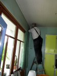 Ich habe währenddessen die Styropor-Untertapete an die Decke des Schlafzimmers meiner Schwiegermutter geklebt und ziemlich dabei geflucht, da dieser Styropor-Kleber sehr pappig und blöd zu verarbeiten ist.