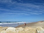 Nachdem es zwei Tage geregnet hatte, war gestern wieder schönster Sommer. Was wir ausgenutzt haben: wir sind nach Montalivet gefahren, wo es Sonntags einen großen Markt und viele, viele Touristen gibt. Nachdem wir über den Markt geschlendert sind und dort hervorragende Tintenfischringe verspeist haben, waren wir am Meer, das nur ein paar Schritte von dem Markt entfernt ist. Dafür, dass das einer der Haupt-Touristenorte ist, war dort erstaunlich wenig los. Und in der Sonne war es sehr gut auszuhalten, da es einigermaßen windig war. Sehr schön war’s.