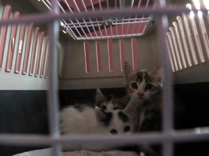 Anderes Thema, aber auch tierisch. Vor etwas mehr als einem Jahr hatte ich hier etwas geschrieben zu einer der wilden Katzen, die es hier zuhauf gibt, die ihre Babies in einem Baumstamm deponiert hatte und dort großzog. Diese Katzenmutter lebt nicht mehr, sie wurde Anfang des Jahres überfahren. Sie war offensichtlich schon recht alt und hörte auch sehr schlecht, wie wir festgestellt hatten. Die Babies sind (natürlich) mittlerweile groß und laufen auch ständig hier herum (und mischen unsere Katzen auf). Die kleine weiße Katze mit dem schwarzen Schwanz, die auf dem obersten der vier Bilder dieses Artikels vom letzten Jahr zu sehen ist, ist nun seit einiger Zeit selbst Mama, und zwar von den dreien hier auf dem Foto. Sie hat ihre Kinder vor dem Haus der Nachbarn unter einer Plane in dem Gerümpelhaufen zur Welt gebracht, den hier – wie wir auch, siehe altes Klo – wohl jeder vor dem Haus liegen hat. Da die Nachbarin die wilden Katzen regelmäßig füttert, fühlte sie sich dort anscheinend wohl (also die Mutterkatze, nicht die Nachbarin). Und das hat sie nun davon: Ihre Kinder wurden heute von den Nachbarn eingefangen. Abnehmer für die Katzenbabies haben sie bereits gefunden. Sie wollen auch versuchen, die Mutter einzufangen, um sie sterilisieren und anschließend wieder frei zu lassen. – Also nicht dass «das das hat sie nun davon» jetzt falsch verstanden wird: Ich finde es absolut gut, dass die Nachbarn das machen. Diese ganzen wilden Katzen hier sind wirklich ein Problem. Als kleinen Beitrag zur Hilfe haben wir ihnen heute wenigstens unsere zwei Katzenkörbe geliehen, da sie keine hatten. Es ist halt nur ein Tropfen auf dem heißen Stein, denn es interessiert nicht viele Leute, was diese Viecher so treiben.