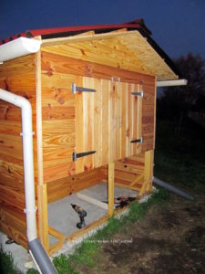 Das ist die Rückseite, bereits mit den Türen vor dem großen Fach, in dem das Hühnerfutter und was Hühner sonst so brauchen gelagert werden soll.