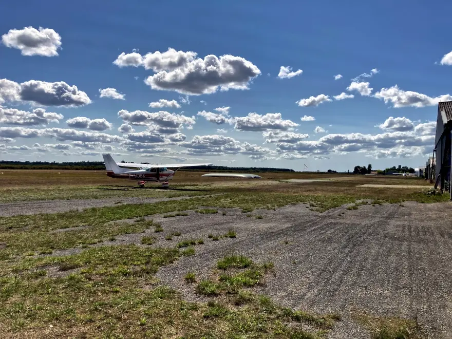 Nachdem wir mittags was gegessen hatten, bin ich mit Leo zu dem kleinen Flugplatz hier in der Nähe gefahren. Leo hat zum Geburtstag einen Flug über das Médoc geschenkt bekommen, und wir waren dort, um einen Termin zu vereinbaren.