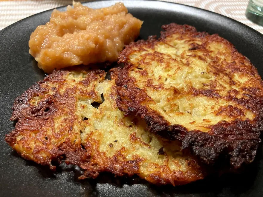 Abends gab es Kartoffelpuffer mit frischem Apfelmus von Äpfeln aus dem Garten: