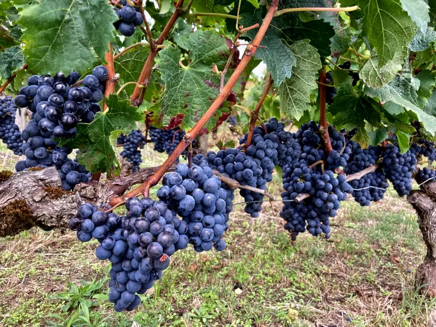 Die Weinernte hat in manchen Gebieten und für manche Traubensorten schon angefangen, hier in der Umgebung allerdings noch nicht. Aber die Trauben hier sehen ziemlich reif aus und haben inzwischen eine wunderschöne Farbe: