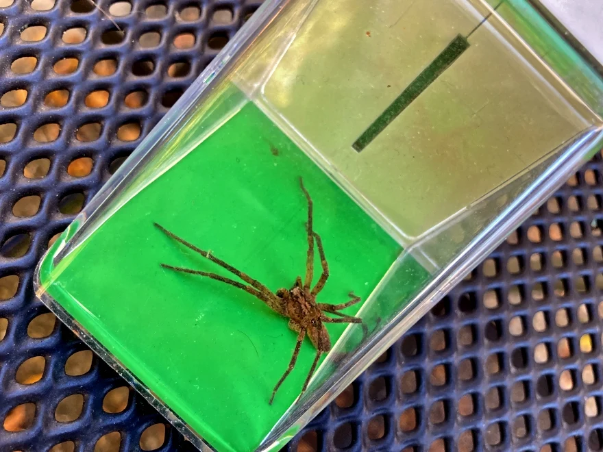 Herbstzeit = Spinnenzeit, im Herbst sind immer viel mehr Spinnen hier im Haus zu sehen als sonst im Jahr. Wir schlagen sie allerdings nicht tot oder saugen sie weg, sondern sie werden entweder in Ruhe gelassen oder gefangen und nach draußen gesetzt. Früher habe ich ein Glas drübergestülpt und ein Papier daruntergeschoben, um sie zu fangen, bis wir vor einiger Zeit ein geniales Teil geschenkt bekommen haben, mit denen man sie super einfangen kann. (Wer keine Spinnen mag, bitte nicht das nächste Foto anschauen.) Die Spinne, die ich hier nach draußen befördert habe, ist offensichtlich eine Nosferatu-Spinne, gut zu erkennen an der Zeichnung auf dem Rücken, die wie ein Totenkopf aussehen soll – ich finde, die Zeichnung ähnelt eher einem Alien, sie sieht zumindest genauso aus wie der Typ in der Serie Resident Alien 😄: