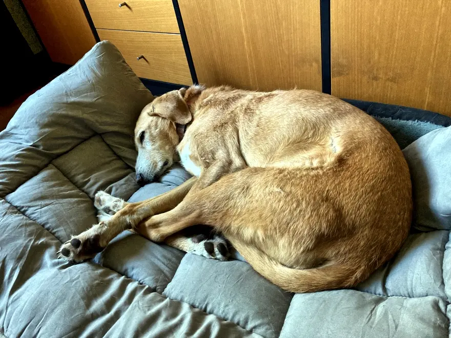 Gaston hat ein neues Kissen bekommen, das Elly so gut gefällt, dass sie ihren Mittagsschlaf darauf macht: