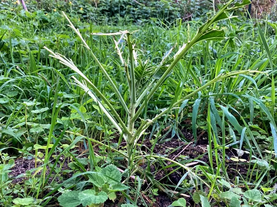 Im Beet daneben stehen die Gerippe von Leos liebevoll angepflanztem Rosenkohl – wer hat die nun wieder abgefressen?