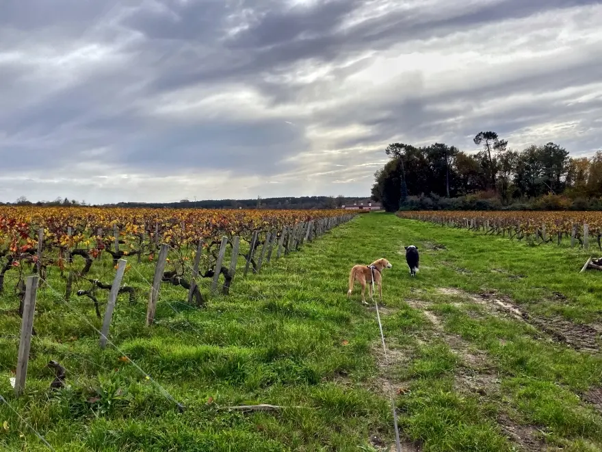 Nach Kaffee und Internet-Durchlesen bin ich mit den Hunden zum Spaziergang gestartet. Es war immer noch total windig; wenn man genau hinschaut, sieht man Gastons Ohren im Wind flattern: