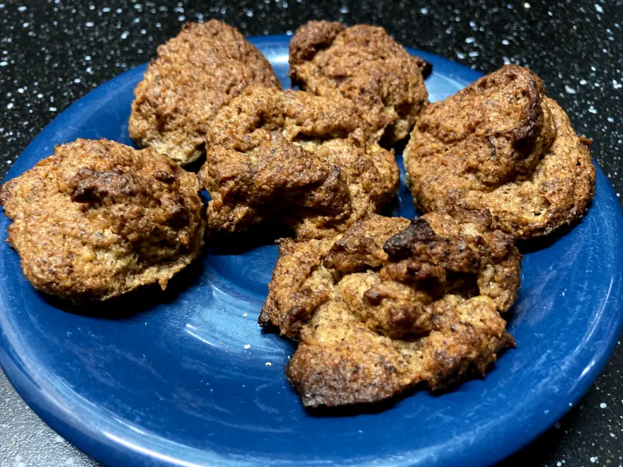 Sehen zwar aus wie Buletten, sind aber sehr leckere Walnuss-Kekse.