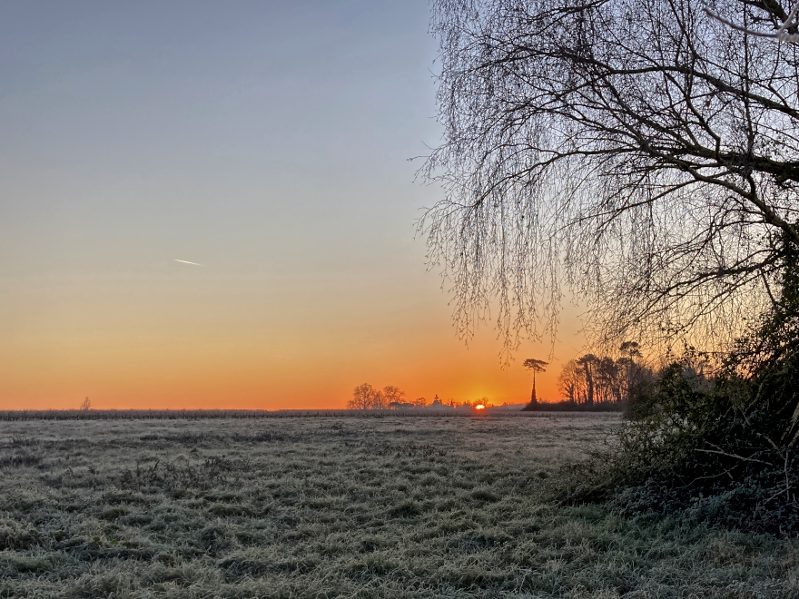 Morgens war alles wieder gefroren draußen, auch das Schloss vom Gartentörchen war zugefroren, so dass ich für das Foto oben vom Sonnenaufgang das Handy über den Zaun halten musste. Minus 4 Grad waren es, das sind zwar 2 mehr als gestern, aber immer noch schweinekalt.