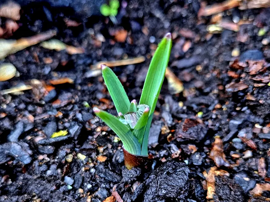 Im Herbst hatte ich Zierlauch-Zwiebeln in die Erde gesteckt, die treiben schon aus: