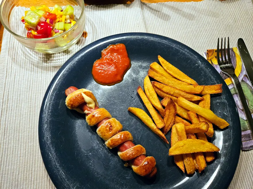 Pommes und Ketchup hat Leo natürlich selbst gemacht.