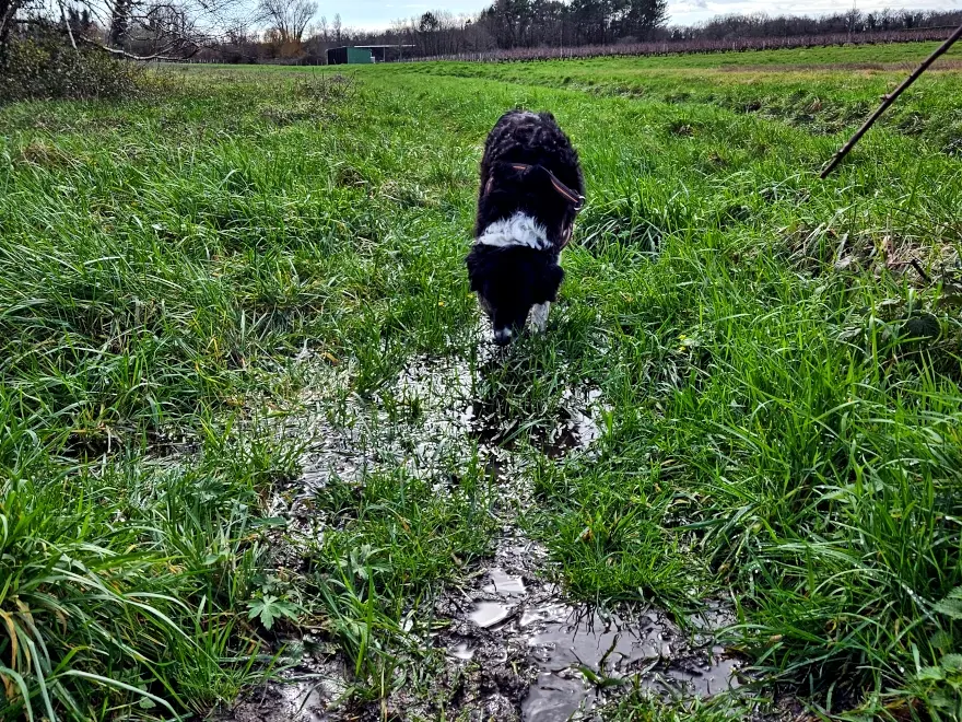 Wie gut, dass direkt hinter unserem Zaun große Pfützen sind, aus denen man trinken kann, denn bei uns bekommen sie ja kein Wasser 🙄 :