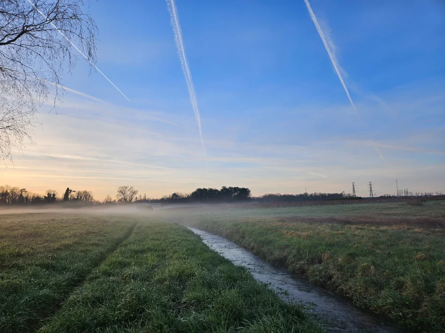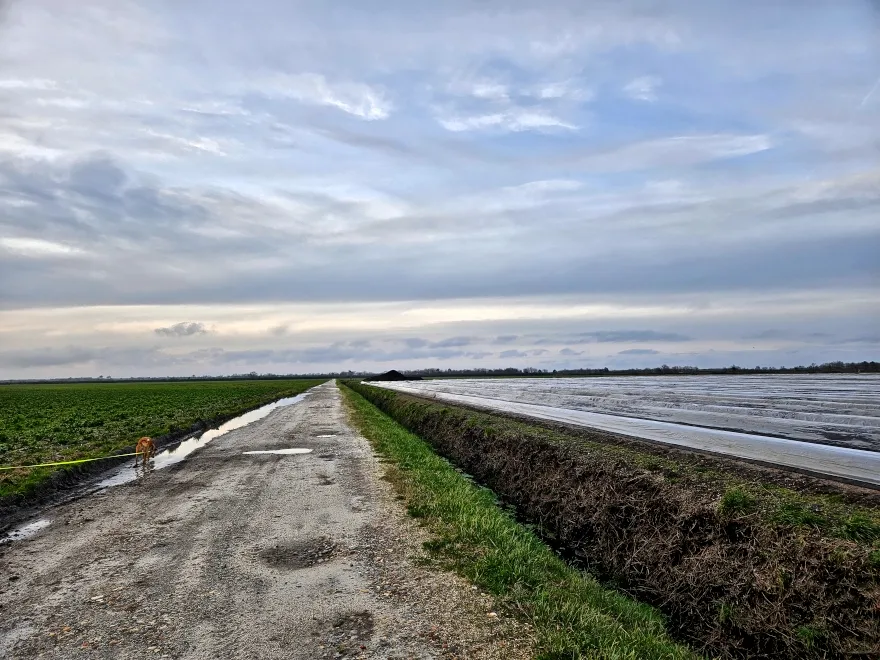 Heute abend dann schöner Spaziergang zwischen Spargelfeldern auf der einen Seite: